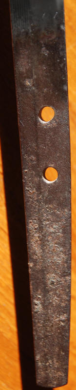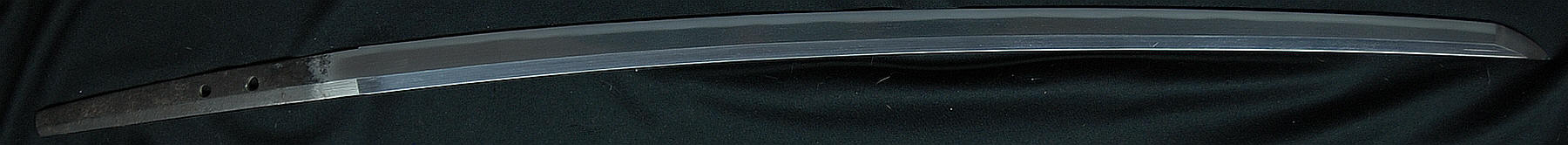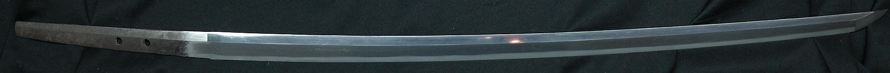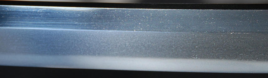 A machi okure katana, signed yonjimei Fujiwara Masahiro. Hawatare: 2 Shuku 2 sun 0 bu (66.66 cm. / 26,244"). Motohaba: 3 cm. Sakihaba: 2 cm. Kasane: 6 mm. Shinogizukure, iroi mune, koshisori, chu kisaki. Chu suguba in nie deki. bright habuchi, ha-nie, kinsuji. Hadatatsu itame ko-mokume jigane packed with jinie and chikei. The nie becomes stronger near the hamon.