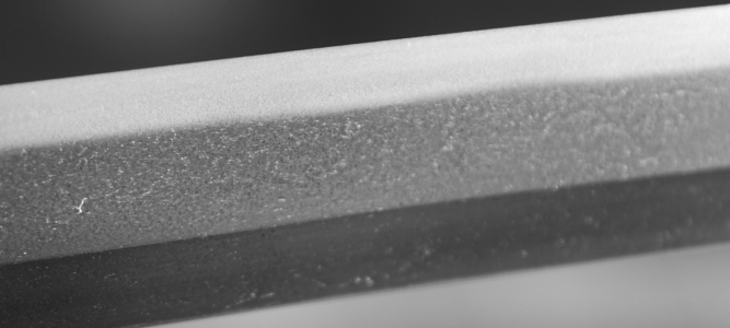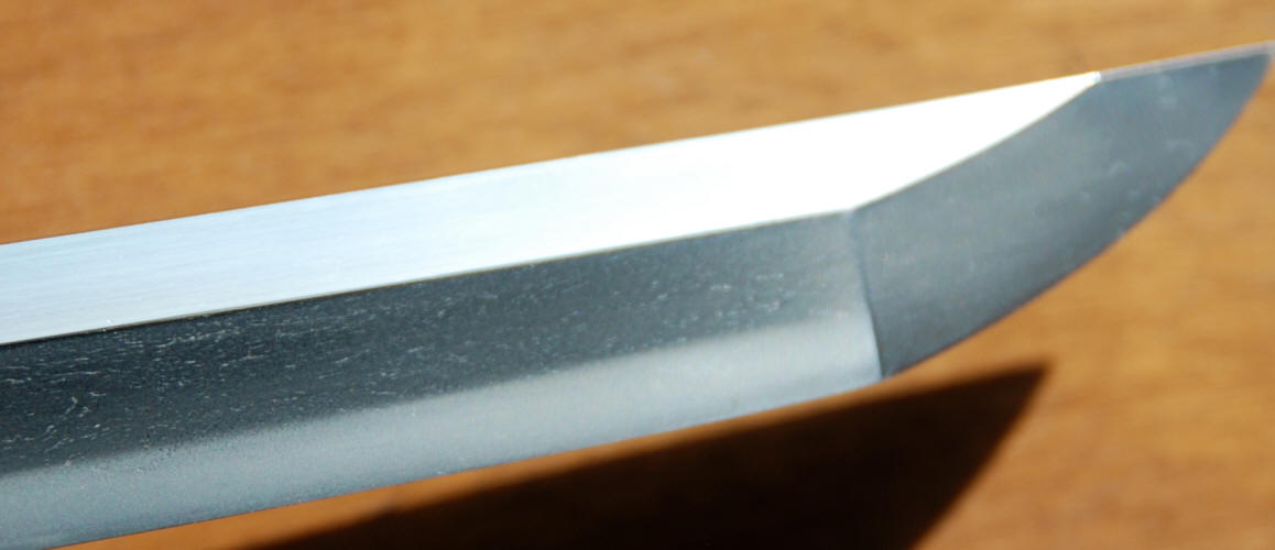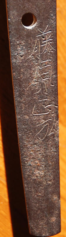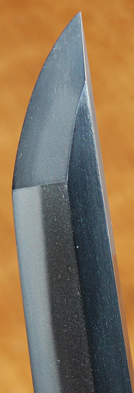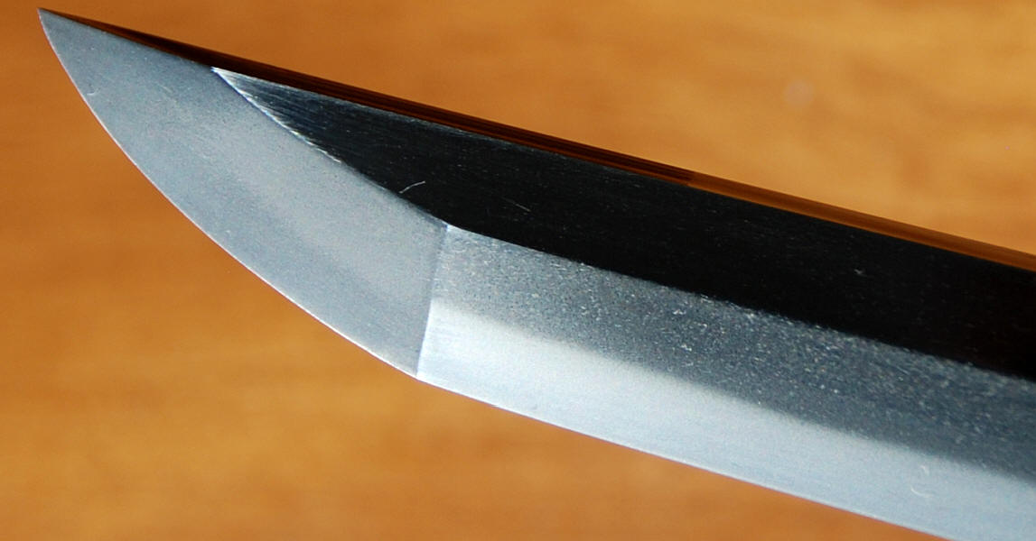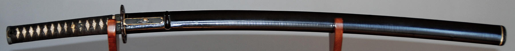 A machi okure katana, signed yonjimei Fujiwara Masahiro. Hawatare: 2 Shuku 2 sun 0 bu (66.66 cm. / 26,244"). Motohaba: 3 cm. Sakihaba: 2 cm. Kasane: 6 mm. Shinogizukure, iroi mune, koshisori, chu kisaki. Chu suguba in nie deki. bright habuchi, ha-nie, kinsuji. Hadatatsu itame ko-mokume jigane packed with jinie and chikei. The nie becomes stronger near the hamon.