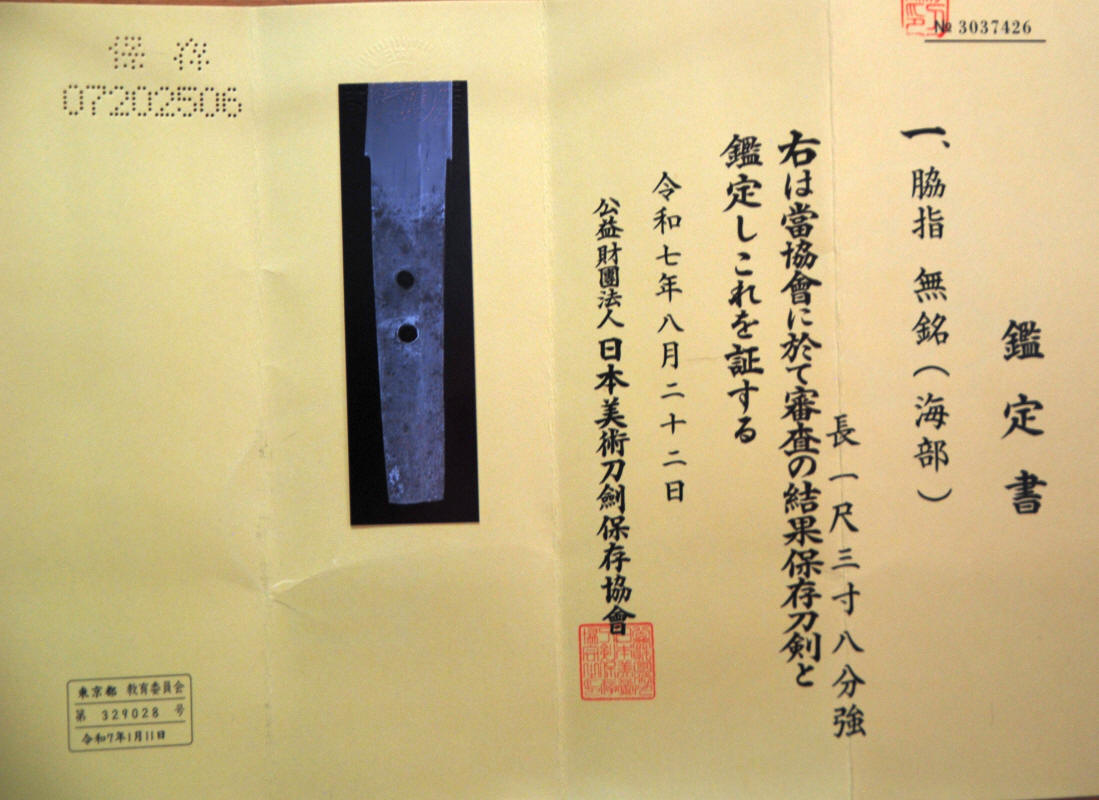 KAIFU: The Kaifu sword group was a school of swordsmiths based in Awa province, the present day Tokushima on the island of Shikoku. They flourished from the Kamakura jidai to the end of the Edo jidai. The Kaifu district that served as a line of defense from the neighboring Tosa province. They are frequently classified as wakimono (not of the gokaden), and considered fascinating though often under rated.