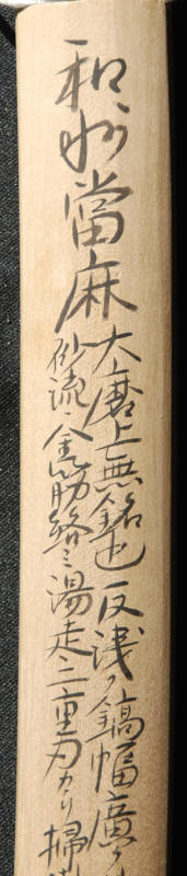 The Taima smiths worked from late Kamakura toThe smiths seem to have been retained by the Taimaji (temple). Kuniyuki who lived in the Shoo jidai (1288 - 1293) was the founder of the school. A sword by Cho Aritoshi is dated Einin roku nen (1298). At a glance Taima may be mistaken for Soshu Yukimitsu. $19,500