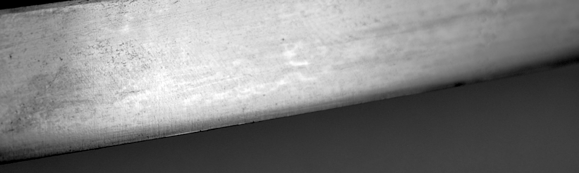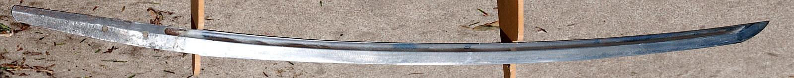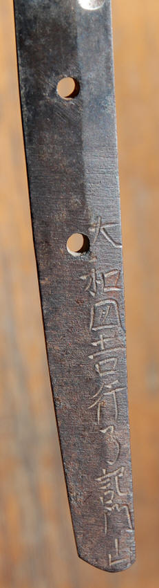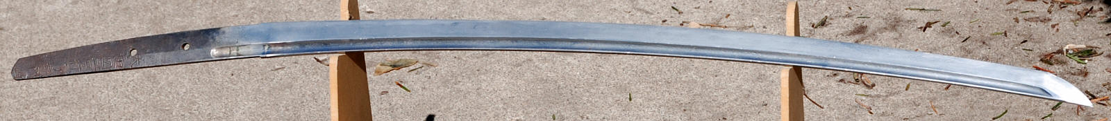 There are no references to this smith in the Meikan, or any other of my references. He seems to have, in the words of the late Sato Sensei, "fallen out of the sword dictionaries". There is no damage, and what obscured the details didn't damage the sword, this should polish well, and from what I can see, should be a very attractive sword. $2,200