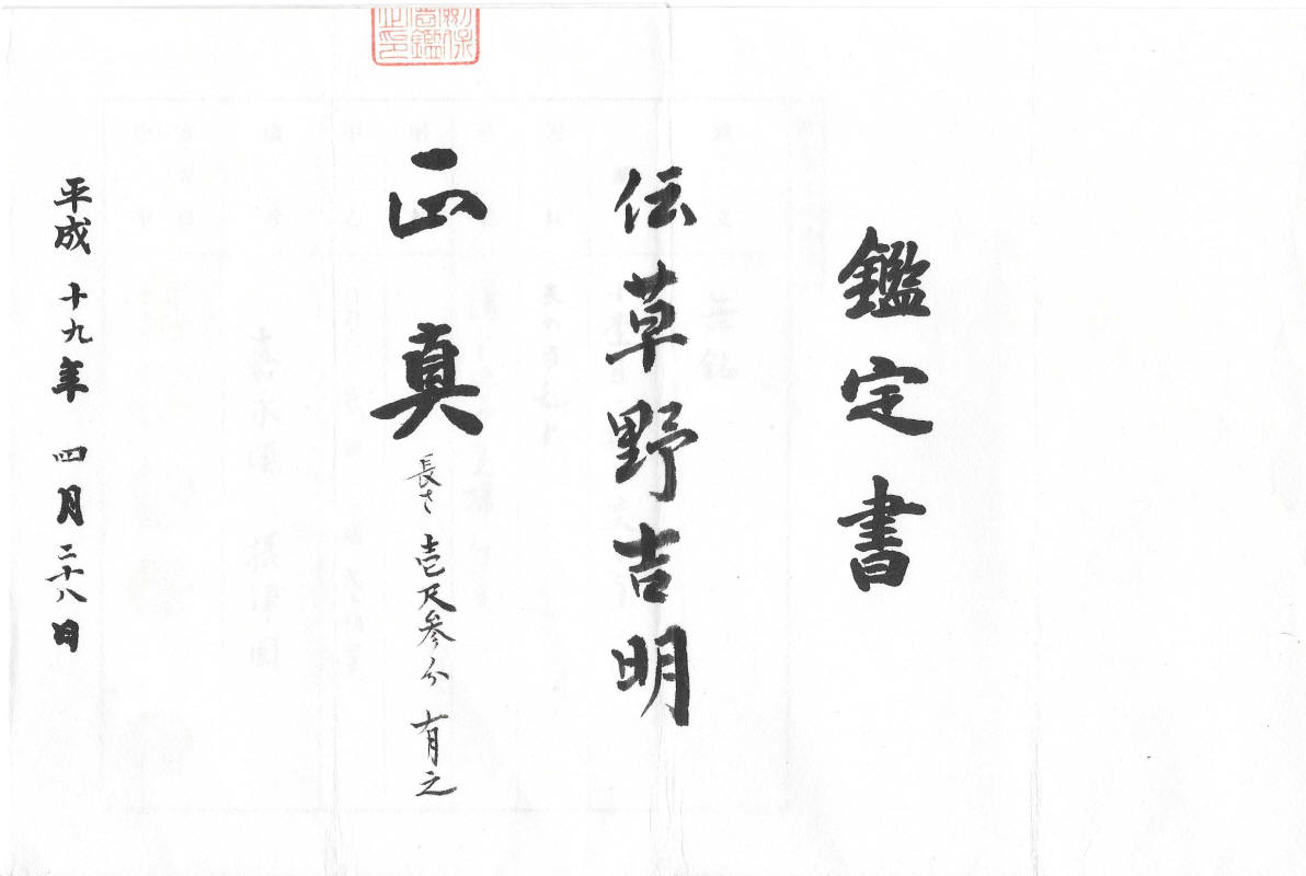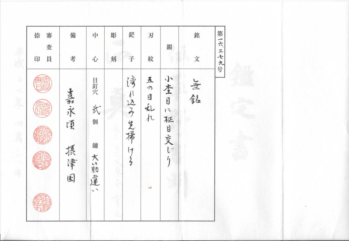 A Settsu smith working around Kaei (February 1848 - November 1854), a student of Sadayoshi.